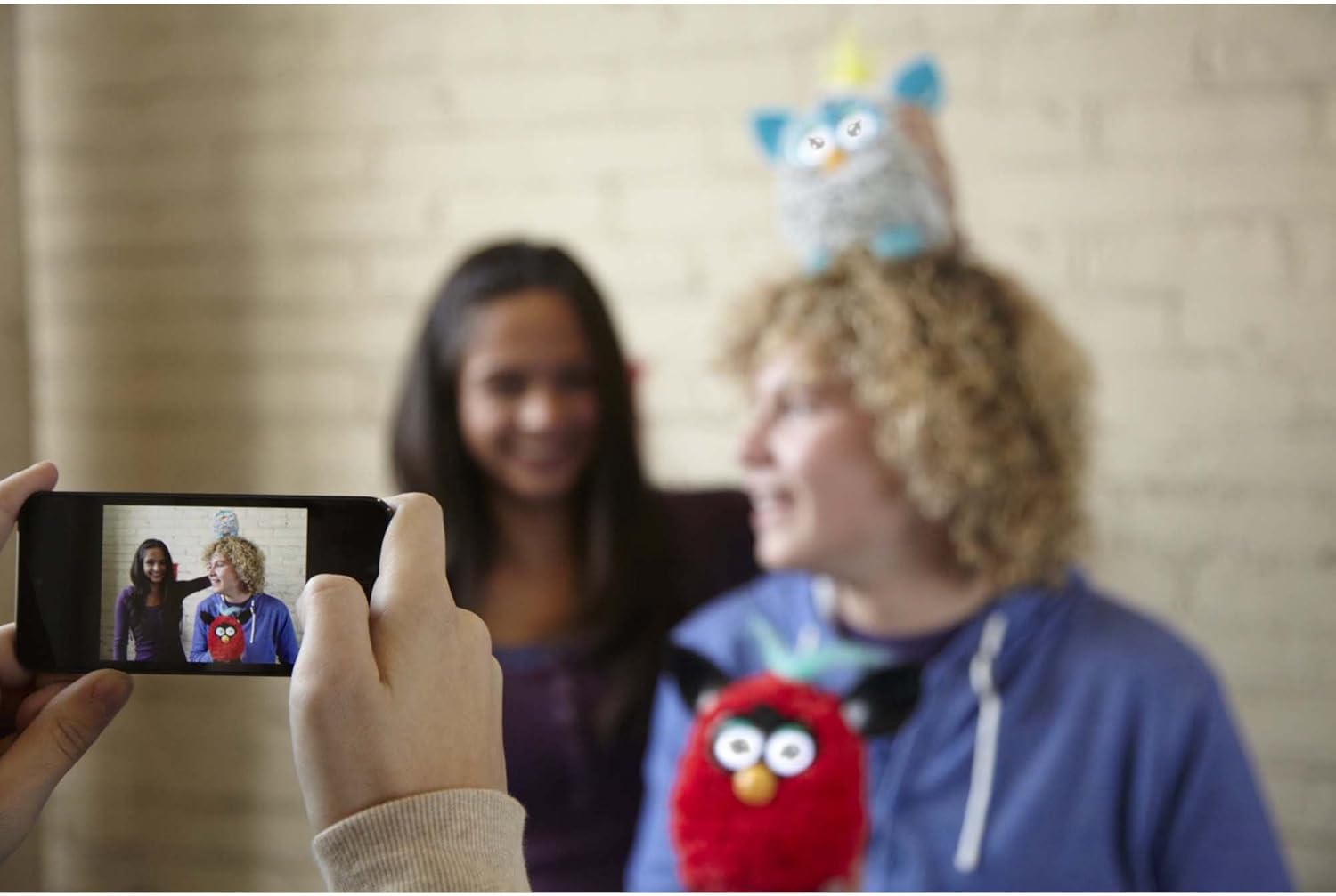 Acaricia la cabeza de Furby; hazle cosquillas en la barriga o tira de su cola y mira qué pasa