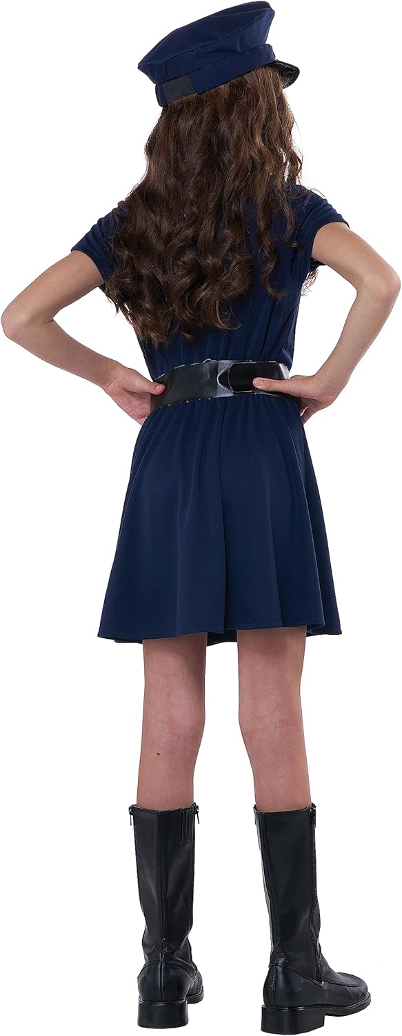 Asegúrate de que esos malos estén fuera de la calle, porque esta pequeña oficial se toma el trabajo en serio. Este disfraz de policía viene con un vestido abotonado con cinturón, esposas, sombrero y distintivos (2). Gafas de sol y botas no incluidas.