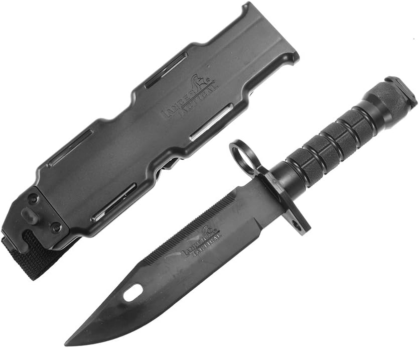 Bayonet Rubber Training Knife: This training knife features a rubber blade and comes with a knife sheath scabbard, ideal for melee Close Quarters Battle (CQB) training.