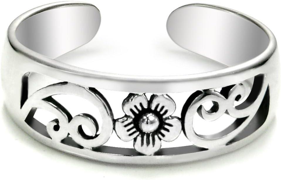 Metal Factory Sterling Silver Hawaiian Plumeria Flower Adjustable Toe Band Ring