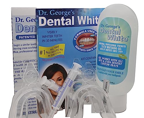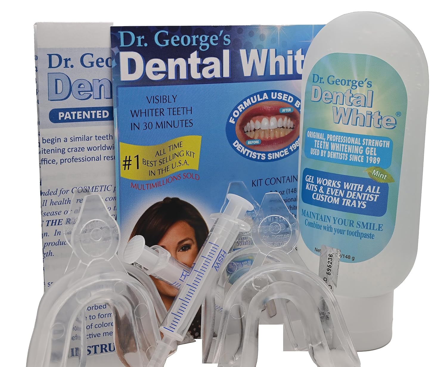 Dr. George pioneered and patented the world's first teeth whitening system for AT HOME use - requiring NO dentist in 1989. Dr. George's Dental White, a professional dental whitening system, employs a patented method using customizable "Dr. George's Warm & form E-Z" trays, which allow you to custom fit the trays to your teeth as done in dental offices. The whitening gel has been tested at Dental Universities and Research Centers.