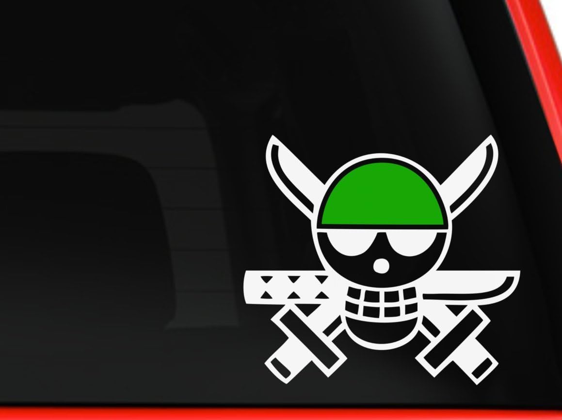 One Piece Zoro Flag White and Green Sticker Decal Pirate Cartoon Anime White Car Window Wall Macbook Notebook Laptop Sticker Decal by faststicker