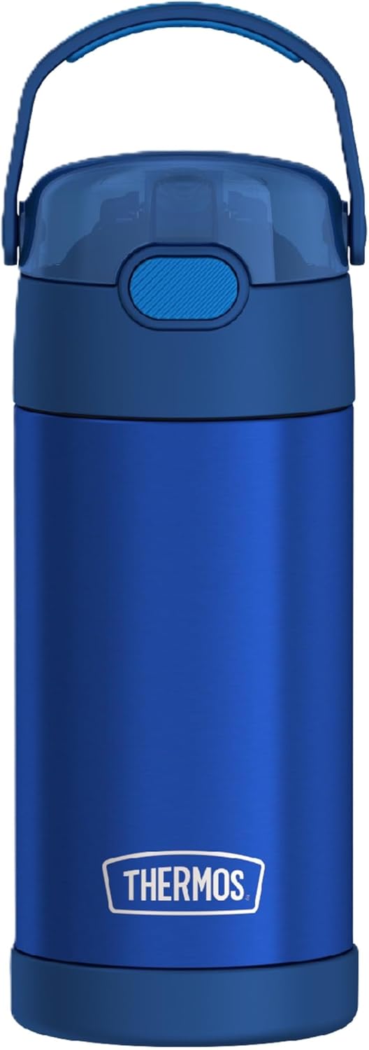 THERMOS FUNTAINER Botella con Pajita y Tapa de Botella de Acero Inoxidable Termo Vaciado de 12 Onzas, Azul