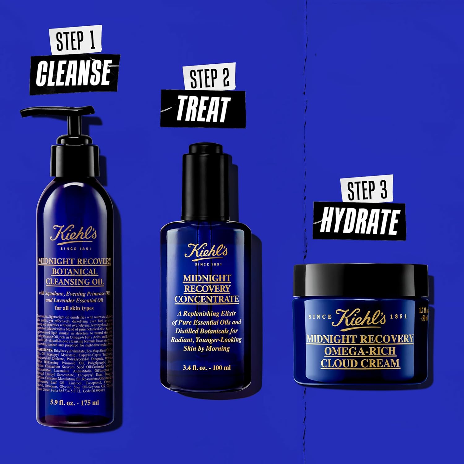 Kiehl's Midnight Recovery Concentrate Moisturizing Face Oil, Lightweight Facial Serum, Restores Skin Radiance Overnight, Reduces Fine Lines, Refines Skin Texture, 99.4% Naturally Derived - 3.4 fl oz
