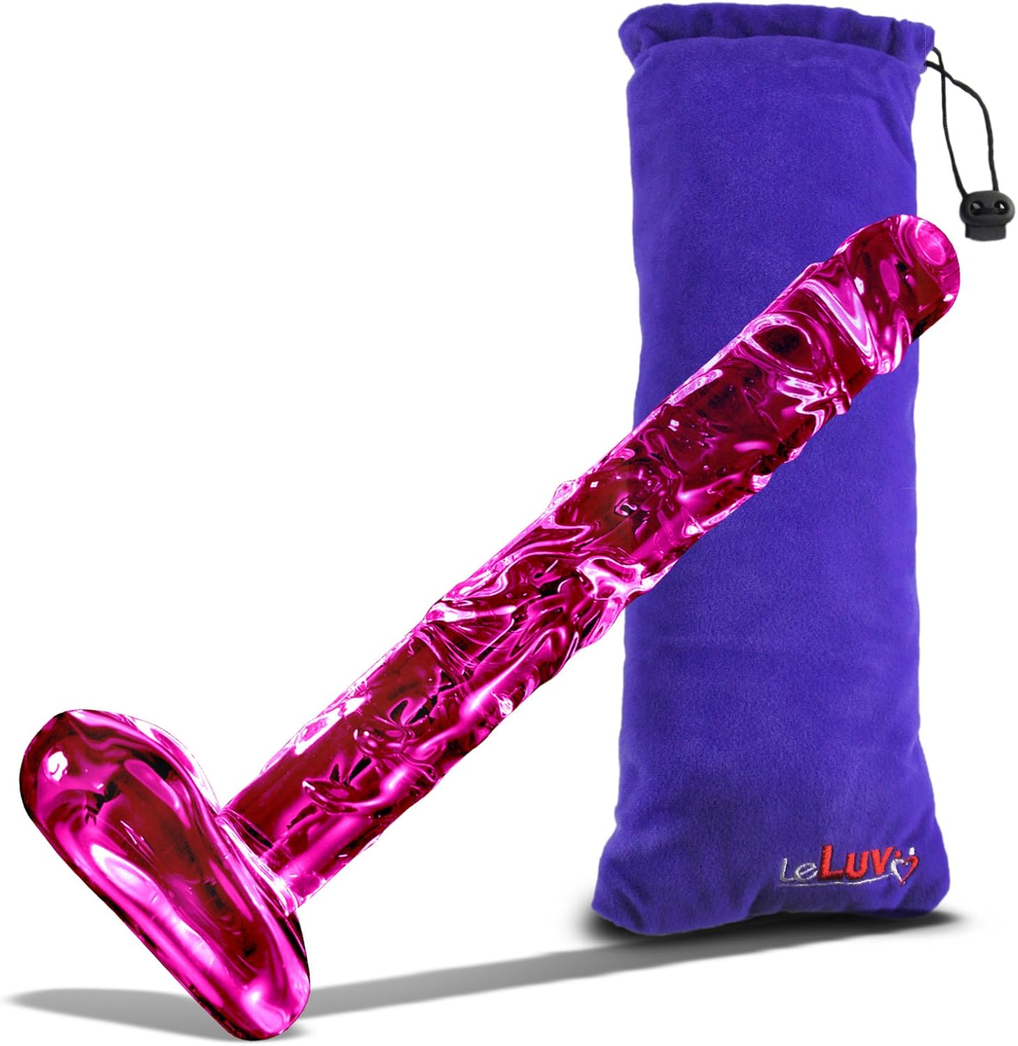 LeLuv Dildo 8" Glass Veiny Shaft with Balls Pink with Premium Padded Pouch