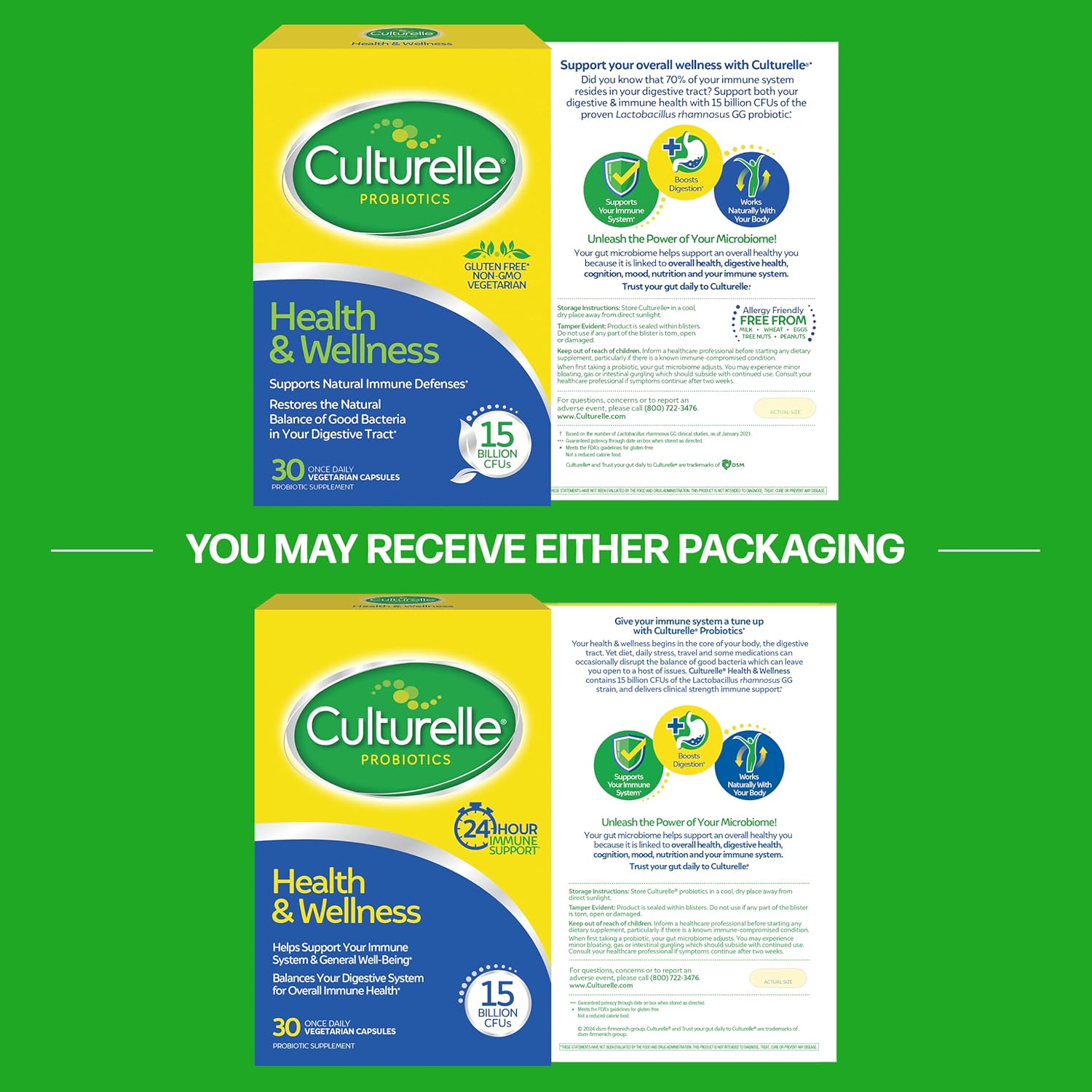 Culturelle Health & Wellness Daily Probiotic Supplement For Men & Women, Helps Support Your Immune System, Occasional Diarrhea, Gas & Bloating, 15 Billion CFUs, Non-GMO, 30 Count