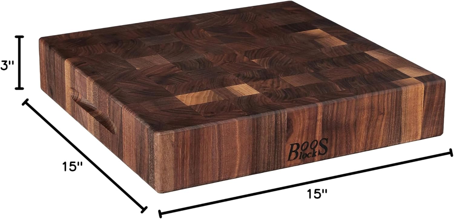 John Boos Block WAL-CCB151503 Classic Reversible Walnut Wood End Grain Chopping Block, 15 Inches x 15 Inches x 3 Inches