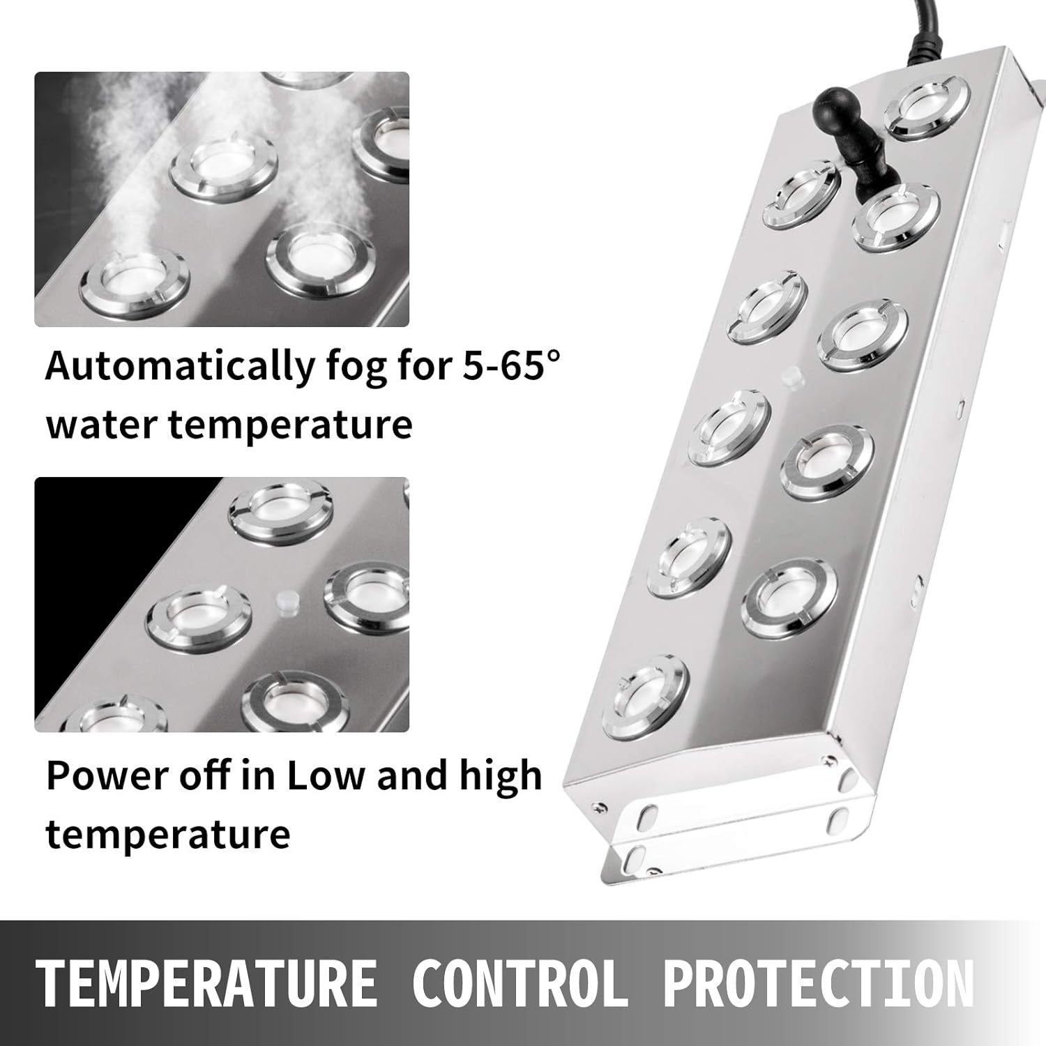 Waterproof & Security: The pond fogger is IP67 waterproof with over-current/heating protection and the length of the power adapter cable is long enough. Automatic induction off water protection. Without worry about the potential danger for secure use.
