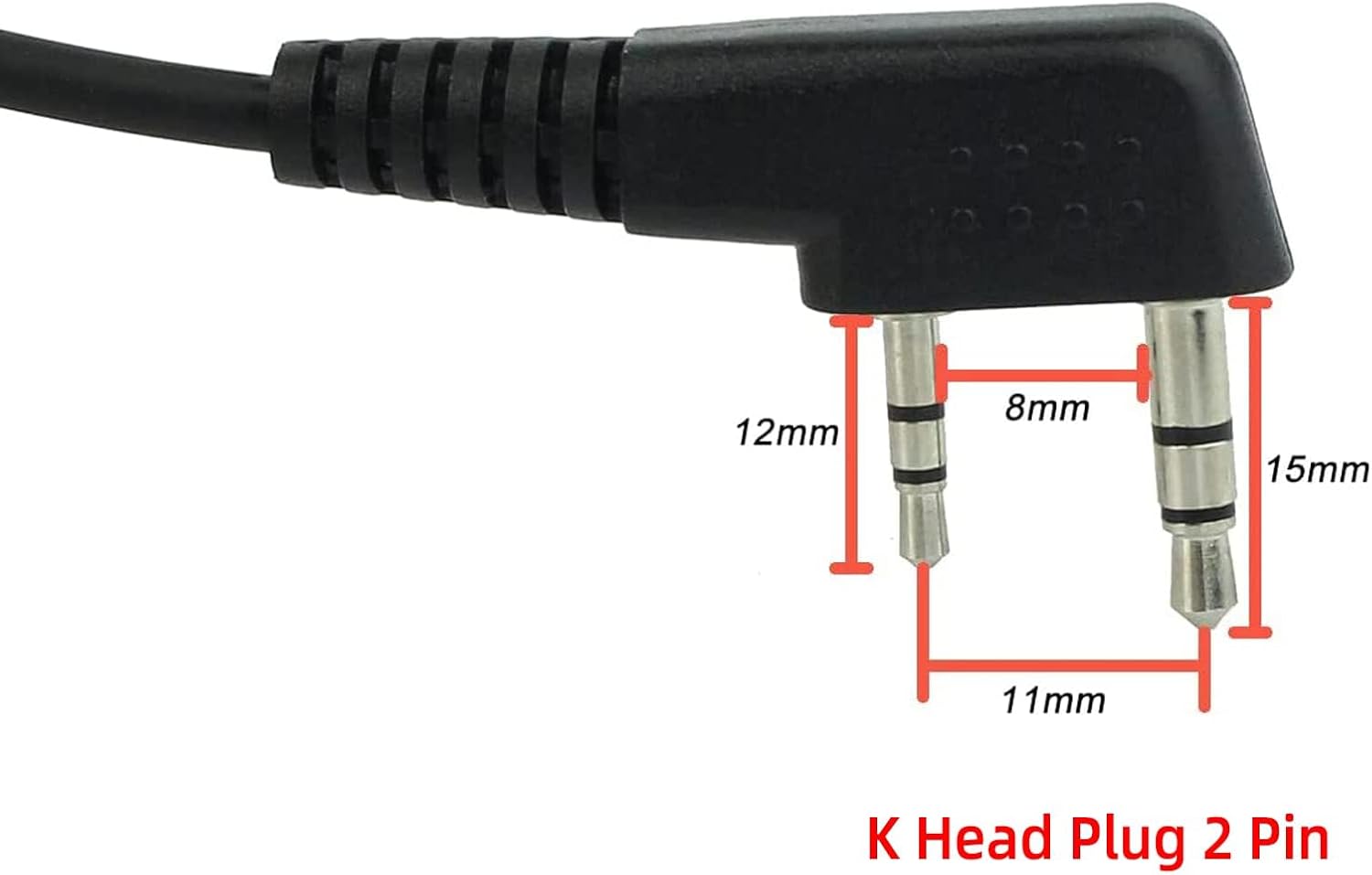 Conector de cabeza K 2 pines; compatible con Retevis RT22 RT21 RT68 RT19 RT18 RT22S H-777S; compatible con Baofeng UV-5R BF-888S; compatible con walkie talkies Kenwood; etc