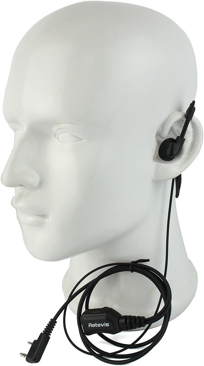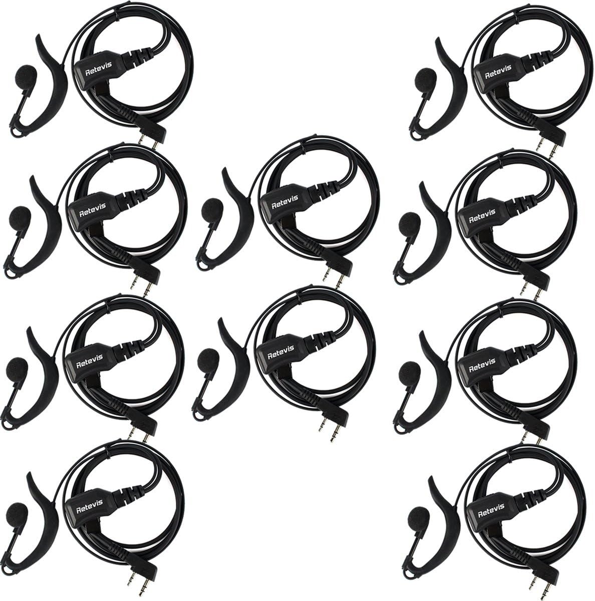 Retevis Walkie Talkie Earpiece con Mic, Ajuste de Volumen, Forma G, para RT22 RT68 RT21 H-777 H-777S RT86, Compatible con Baofeng UV-5R 888S pxton Kenwood Radios Bidireccionales, Earpiece de Radio Bidireccional 2 Pin (10 Paquete)