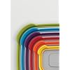 This innovative, space-saving design neatly combines the containers and lids for different-sized storage containers in the same space as one. The problem with most sets of storage containers is that they take up precious cabinet space when not in use and usually require lids and bases to be stored separately. This can make pairing the corresponding elements a real hassle. With the Nest Storage Food Storage Container Sets, containers nest neatly inside each other and lids snap conveniently together making them very easy to find. All elements are clearly color-coded for easy pairing. Lids and containers are freezer and microwave safe, and top rack dishwasher safe. BPA free and food safe. Keep containers upright. Avoid overfilling to lid level. Not suitable for use in ovens and grills.
