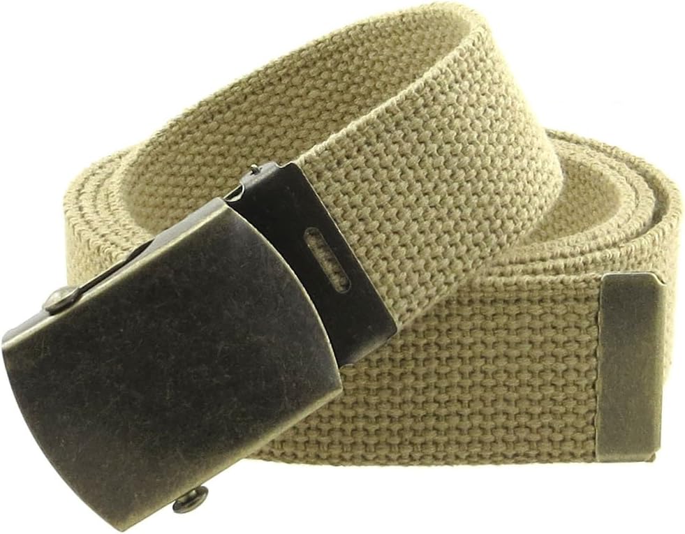 Canvas Web Belt Military Style with Antique Brass Buckle and Tip 50" Long