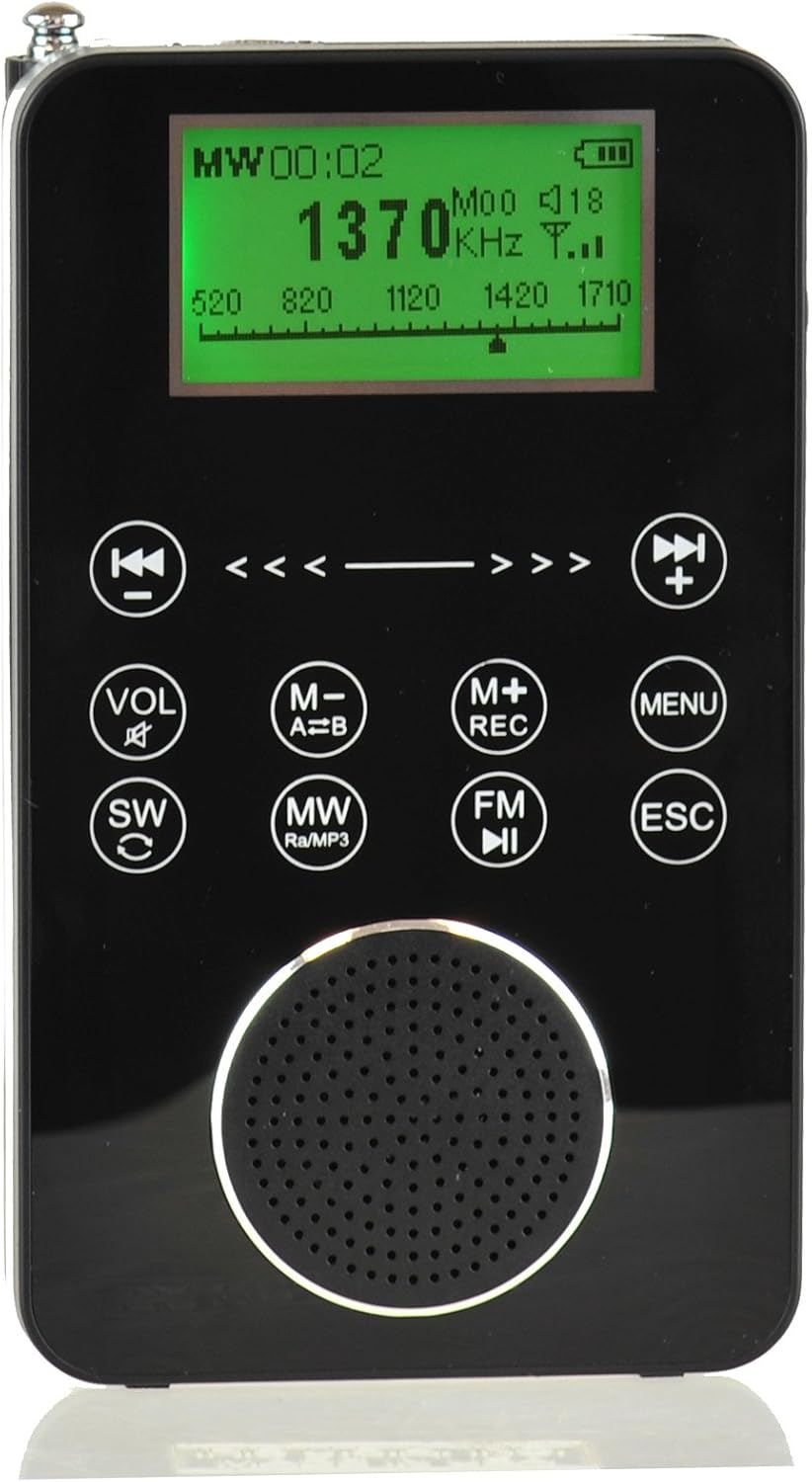 4-en-1 radio digital AM/FM onda corta, reproductor MP3, grabadora y lector de e-libros con control de pantalla táctil digital
