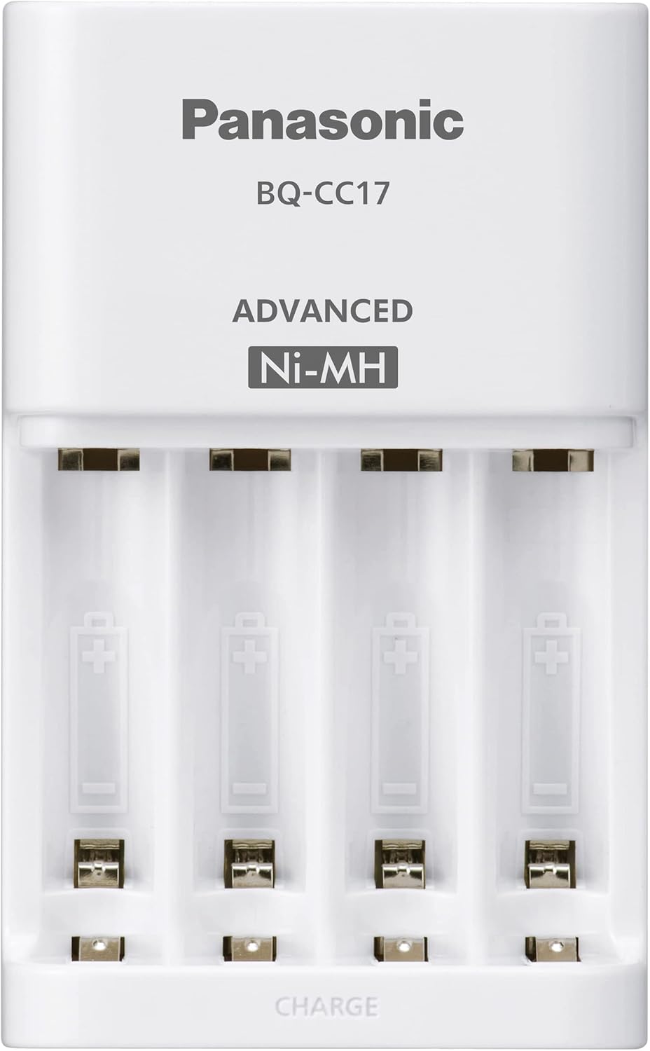 The Panasonic BQ-CC17, 4-position Ni-MH battery charger delivers advanced, individual cell charging capabilities. Ideal for use at home, in the office, or on the road, this Panasonic CC17 charger is a convenient way to recharge any combination of up to four AA or AAA Ni-MH eneloop, eneloop pro, or conventional Ni-MH rechargeable batteries. The CC17 charger also features 4 LED charge indicator lights and a retractable AC plug. This advanced AC charger is designed to charge battery cells individually; allowing you the freedom to completely charge fully discharged cells or just top off the charge of AA or AAA cells that are only partially drained. The single cell charge capability allows any combination of one, two, three or four AA or AAA Ni-MH batteries to be charged at the same time.
