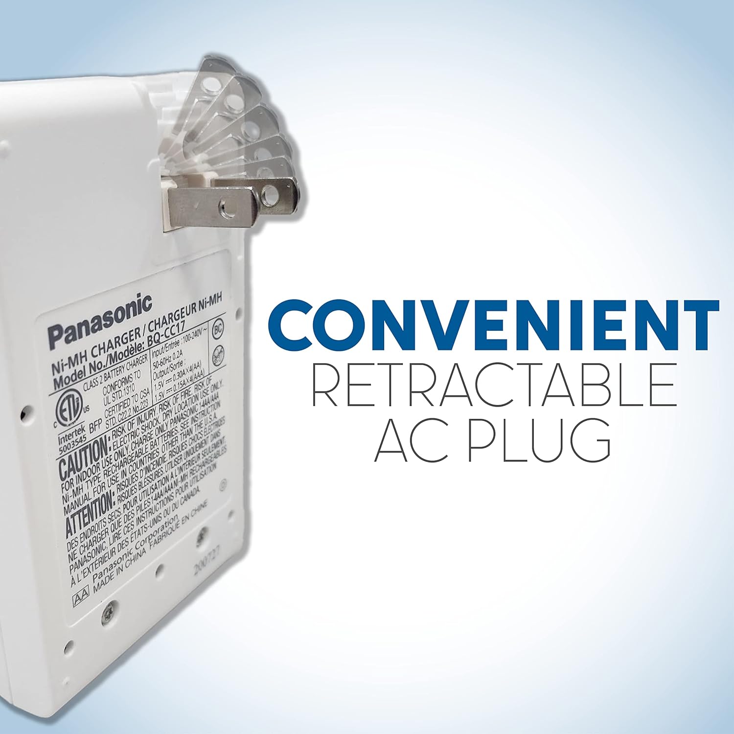 RETRACTABLE AC PLUG: The CC17 Panasonic battery charger also features a convenient retractable AC plug making storage easy