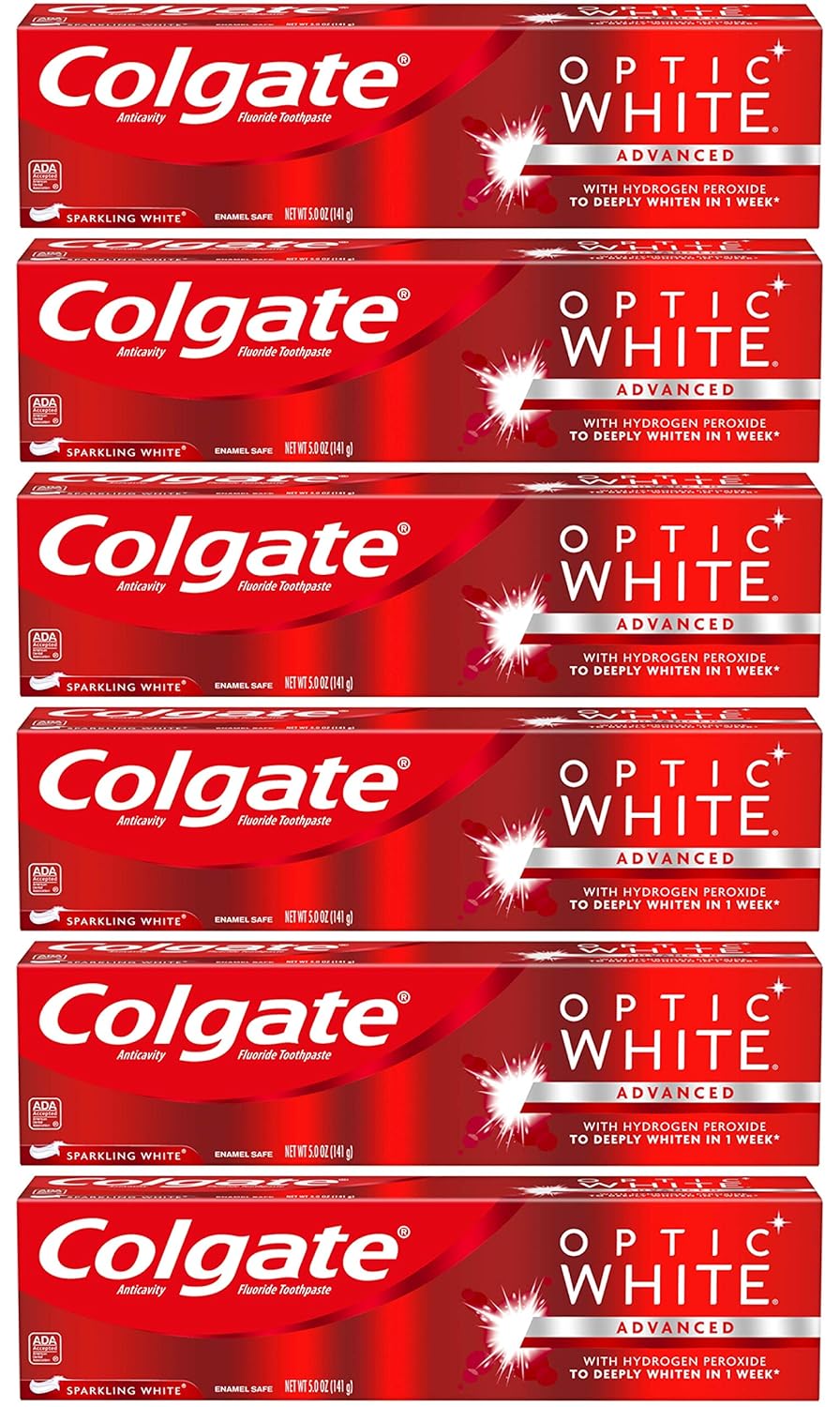 Colgate Optic White Whitening Toothpaste, Sparkling White - 5 Ounces (6 Pack)