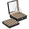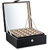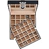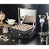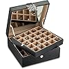 Earring Organizer - Classic 50 Section Jewelry Box/Case/Holder for Earrings, Rings, Necklaces, Jewelry, Cufflinks or Collections -2 Layer Small Compartments with Large Mirror - Black