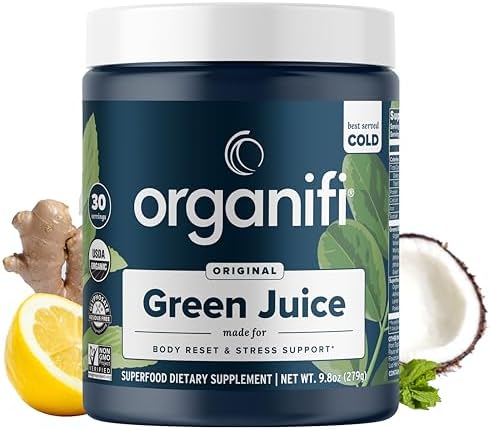 Organifi Green Juice - Powder Supplement with Organic Spirulina, Ashwagandha, and Chlorella - Helps Achieve Fitness Goals and Reduce Cortisol Levels, 30-Day Supply