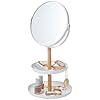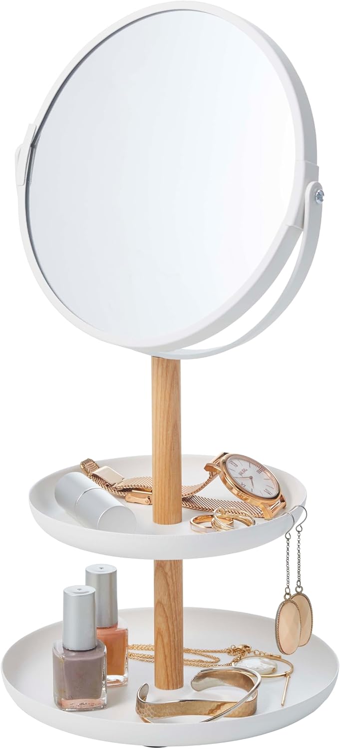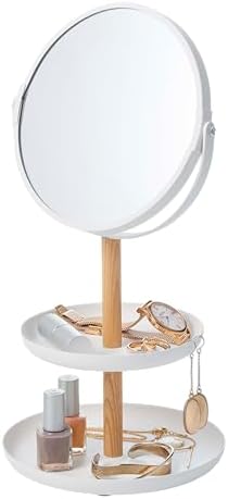 ESPEJO DE DOBLE CARA: esta bandeja de accesorios de dos niveles cubierta con un espejo funciona doble función en su tocador o tocador, maximizando el espacio. El espejo giratorio cuenta con un aumento de 1x en un lado y un aumento de 3x en el otro.
