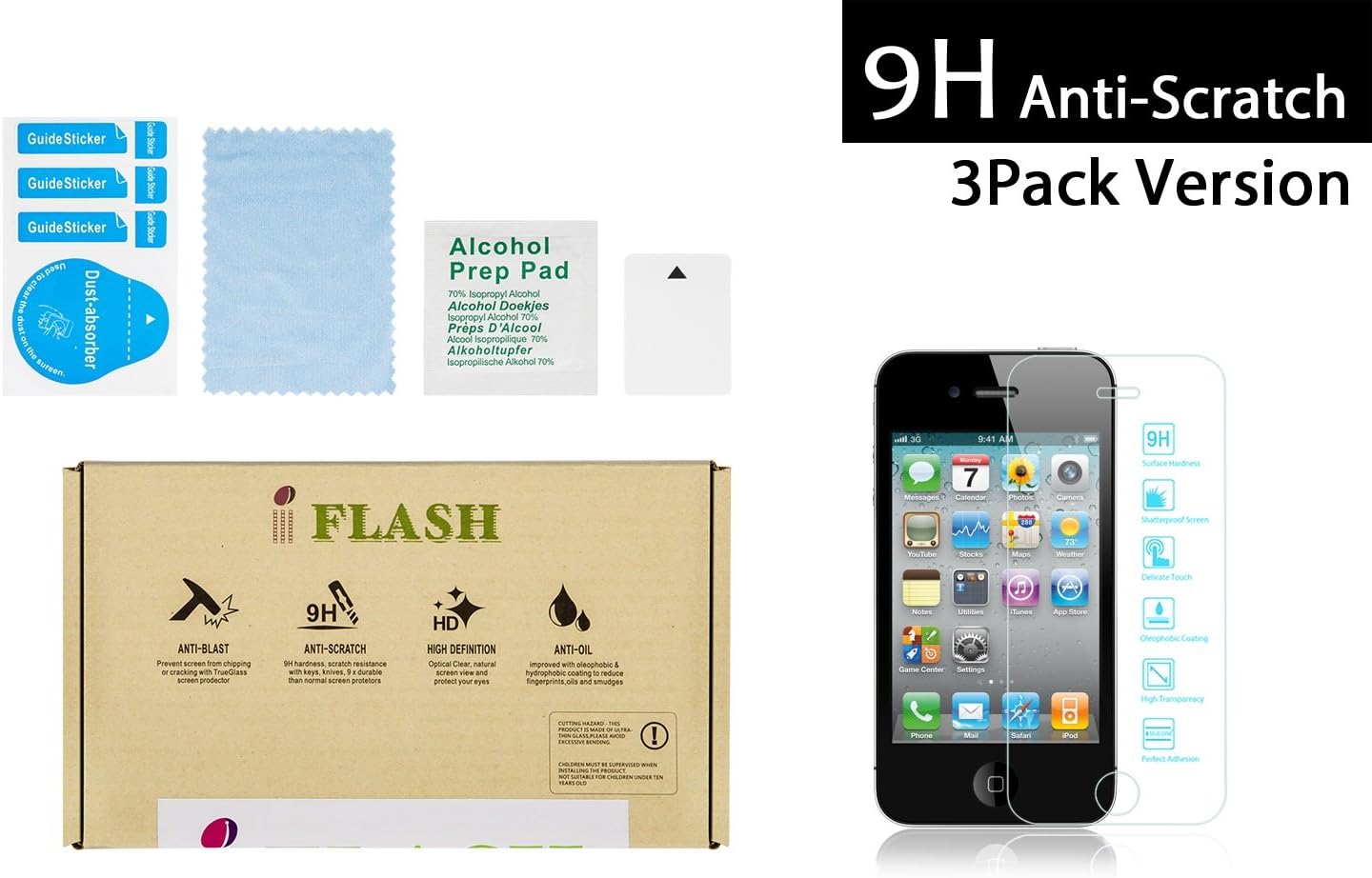 IFLASH 3 Pack Tempered Glass Screen Protector For Apple iPod Touch 4th Generation - Transparent Crystal Clear / 2.5D Rounded Edges / 9H Hardness/Scratch Proof/Bubble Free/Oleophobic Coating