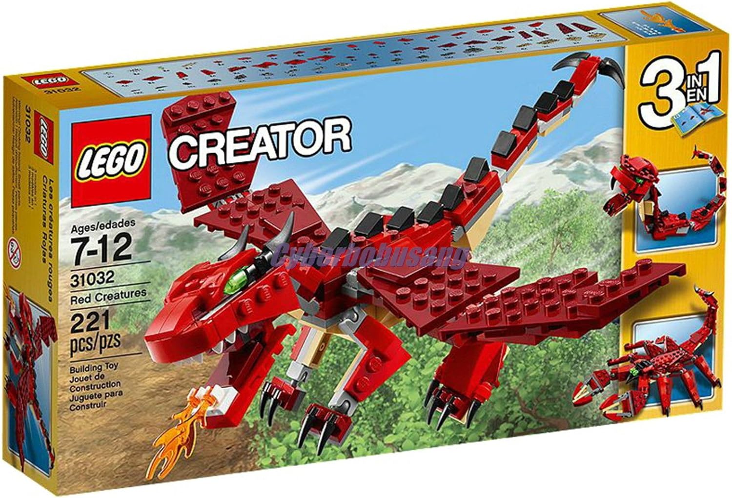 Take to the skies with the fearsome Red Creatures fire-breathing dragon! This awesome 3-in-1 model features a classic red, tan and black color scheme, large movable wings, long scaly tail, fiery breath, horns, long talons and bright green eyes. Stomp through forests and soar over huge mountains! When you're done creating legendary tales, rebuild the dragon into a menacing snake or a 6-legged scorpion.