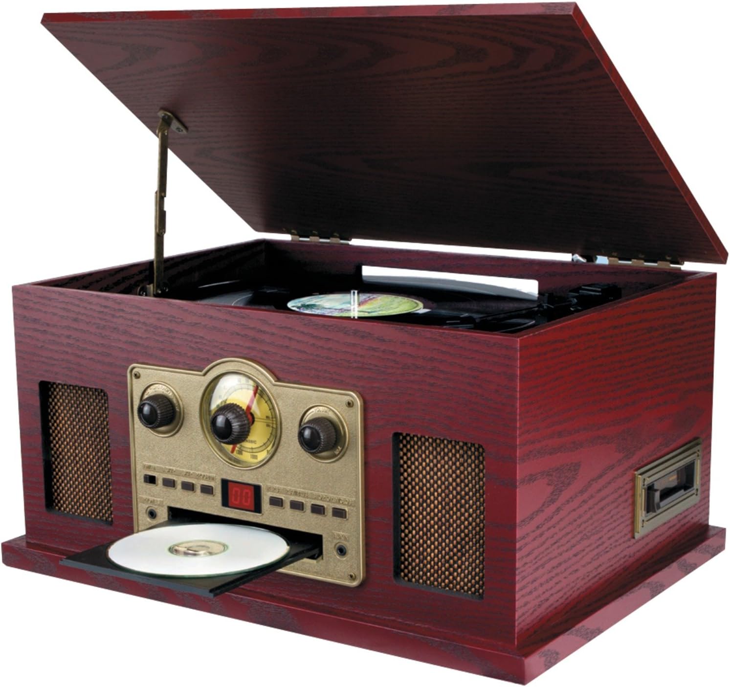 Sylvania SRCD838 5-In-1 Nostalgic Turntable with CD, Casette, Radio, Aux-In,Brown