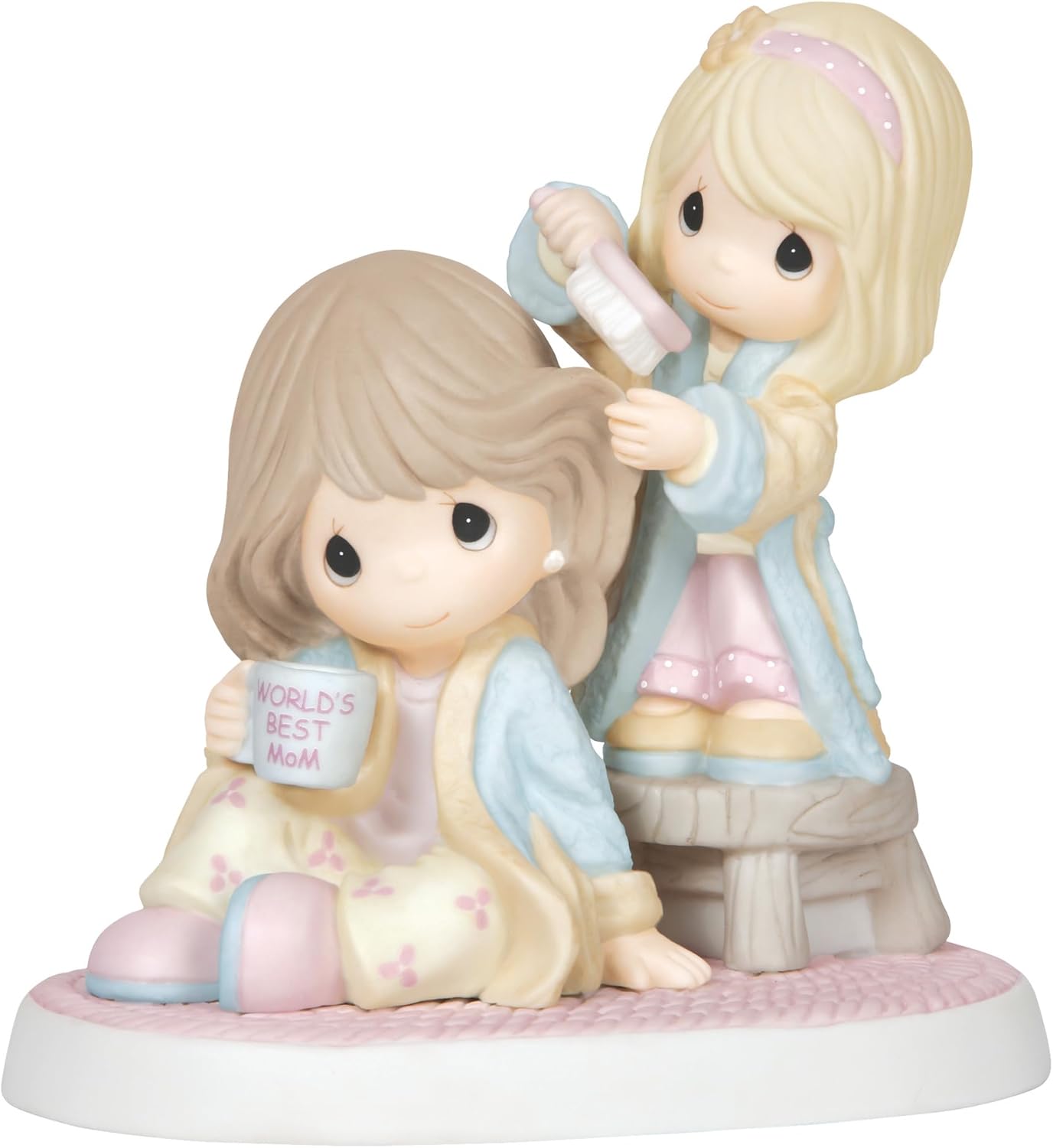 With each stroke of the hairbrush, this mother and daughter strengthen their special bond. Honoring those small moments that build trust and make memories that remain for a lifetime. This Precious Moments bisque figurine is the perfect Mother's Day gift, birthday gift, or give it to mom just because you want to show her how much you cherish her. Meticulously sculpted of fine bisque porcelain and expertly hand painted. Approximately 5.75 H x 5.5 W x 3.75 D inches.