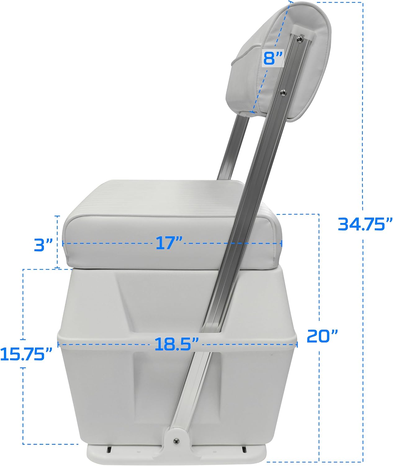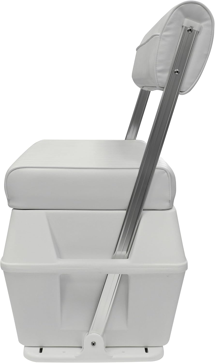 Wise 8WD156 Swingback 70 qt Cooler Seat Seat is Constructed of Rotational Molded Insulated Plastic. Injection Molded Plastic Seat Bottom and Back, Marine Grade Vinyl. High Compression Foam Padding. Hinged Seat Cushion. Insulated Cooler or Livewell-Baitwell with Center Drain Hole. Aluminum Swing Arm Brackets. Injection Mold Plastic Mounting Bracket. Easy Assembly.