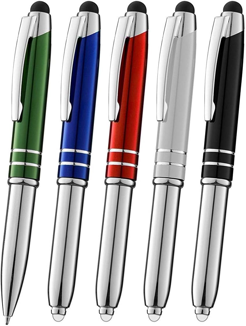 Stylus Pens for Touchscreen Devices, Tablets, iPads, iPhones, Multi-Function Capacitive Pen with LED Flashlight, Ballpoint Ink Pen, 3-in-1 Metal Pen, Multi,5PK
