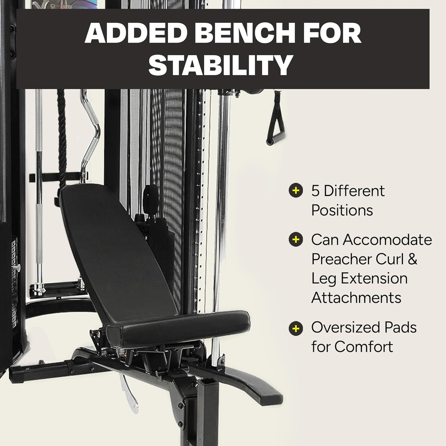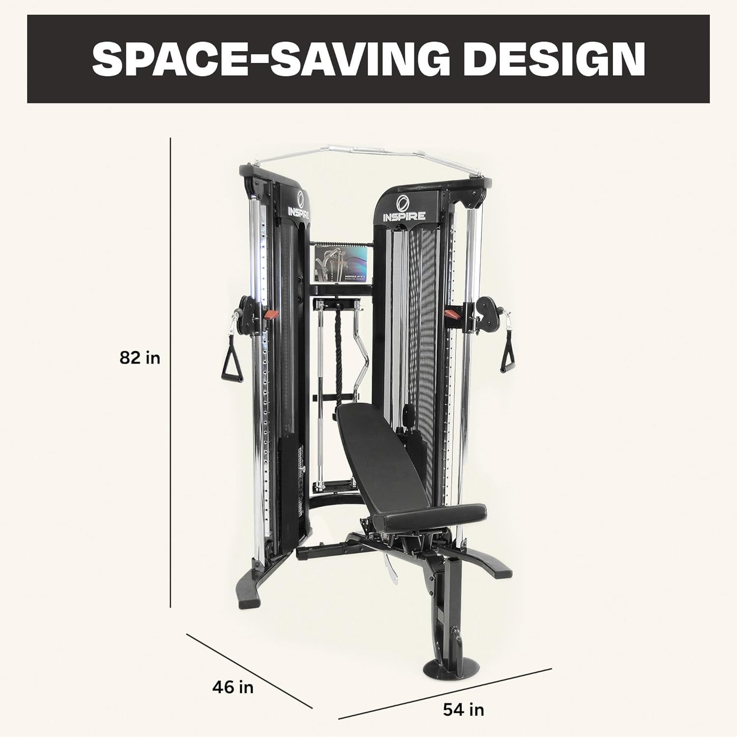 Inspire Fitness FT1 Functional Trainer with Bench - Compact at Home Workout Machine with Accessories - Two 165 lb Weight Stacks - Smooth Glide Cable Machine with Weight Bench