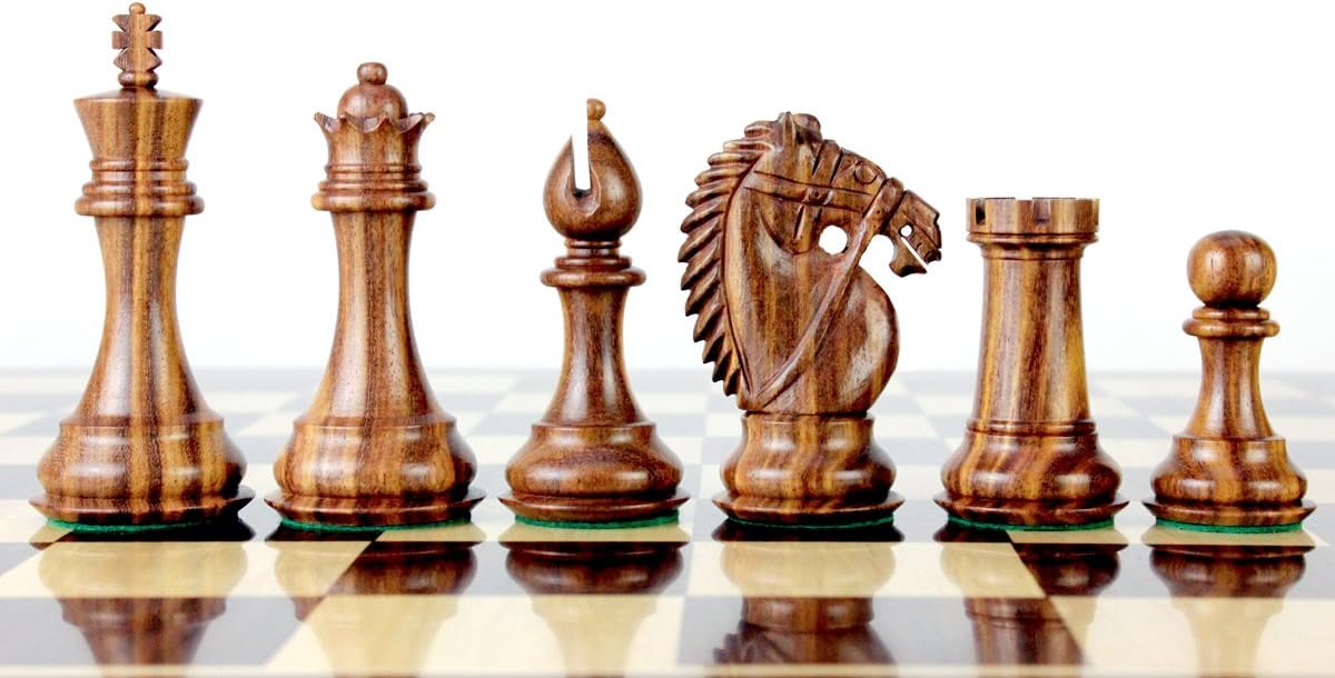 House of Chess - Golden Rosewood/Boxwood Chess Pieces Rio Staunton 4.0 (102 mm) 2 Extra Queens - Triple Weighted