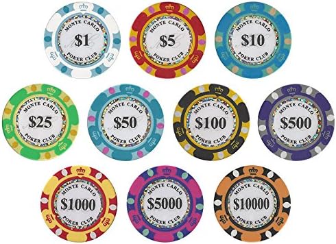 1000pcs 14g Monte Carlo Poker Club Poker Chips Set with Custom Build (1000 Chips Acrylic Case)