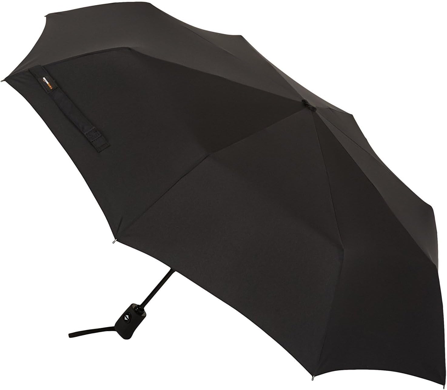 Amazon Basics Round Travel Umbrella for Rain, Compact Umbrella with Auto Open/Close, Strong Alloy Steel Frame, Compact Size for Backpacks/Handbags (11" Long When Closed), One Size, Black