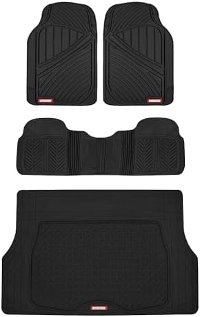 Alfombrillas de Caucho Todo Clima Motor Trend FlexTough Performance con Forro - Set Completo Alfombrillas Frontales y Traseras para Autos Camiones SUV, Alfombrillas Automotrices (Negro)