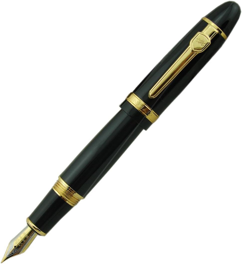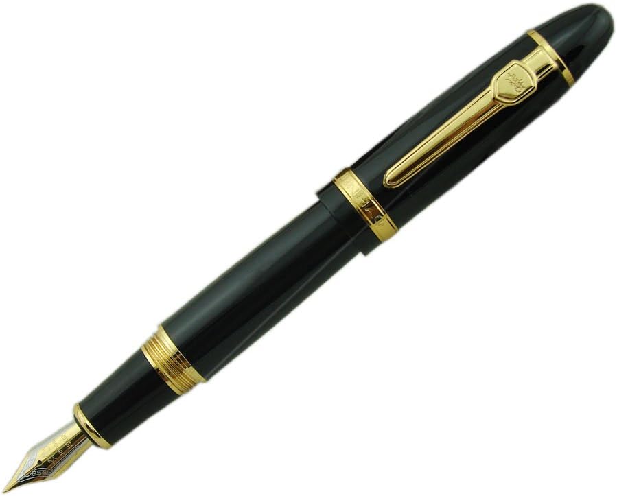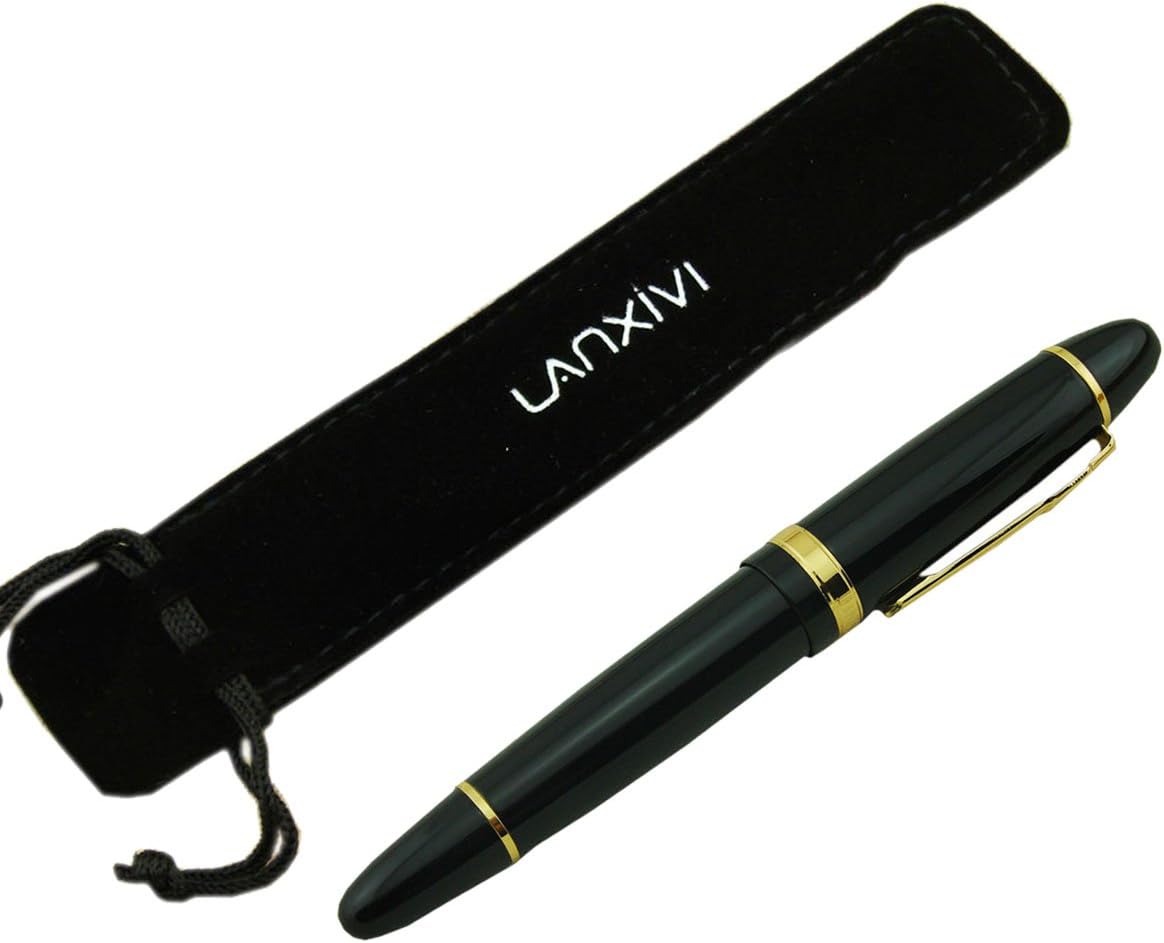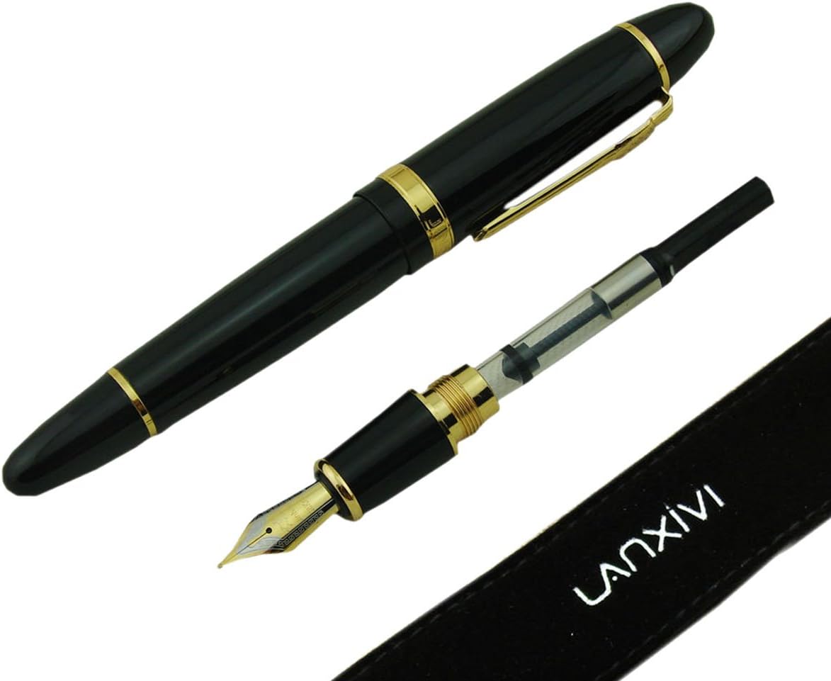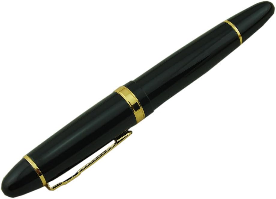 Jinhao 159 Pluma de Tinta Media Negra Laca con Borde Dorado Grande Pesada con Bolsa para Plumas y Convertidor de Tinta Recargable, Colección de Firmas de Negocios