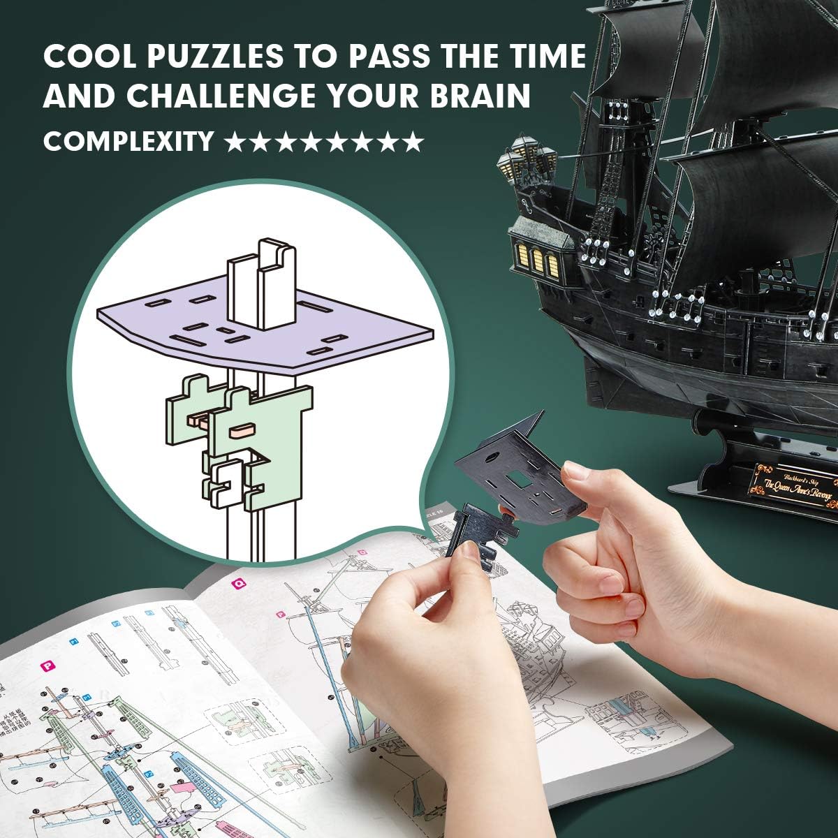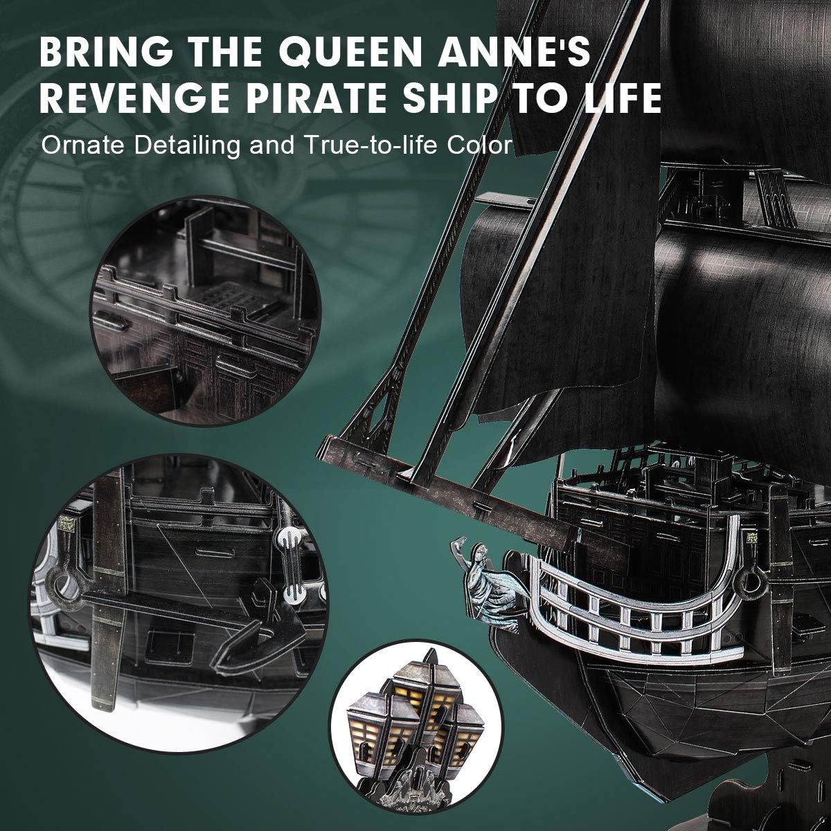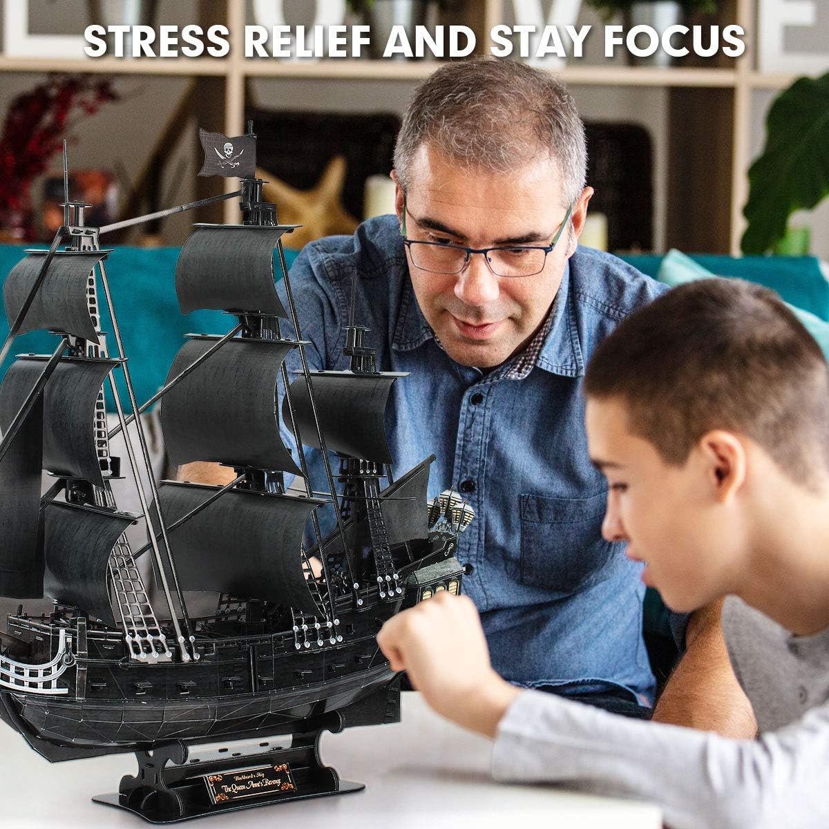 Relieve Stress and Focus on Your Assembled World: Queen Anne's Revenge Pirate Ship model, a splendid model ship that will provide you with lengthy periods of creative leisure. Provide 10 hours+ of fun and entertainment piecing this incredible 3D puzzle together.