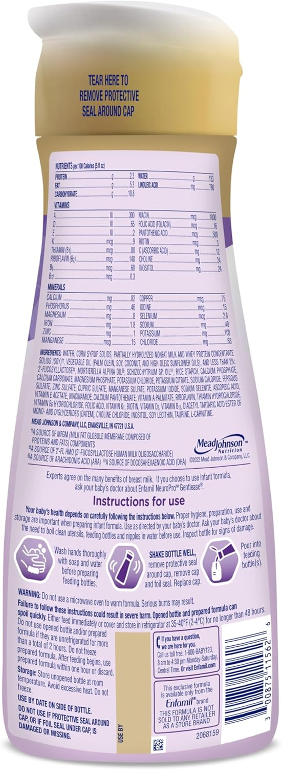 Enfamil NeuroPro Gentlease Baby Formula, Brain Building DHA, HuMO6 Immune Blend, Designed to Reduce Fussiness, Crying, Gas & Spit-up in 24 Hrs, Ready-to-Feed Infant Formula, Liquid, 32 Fl Oz (6 Count)