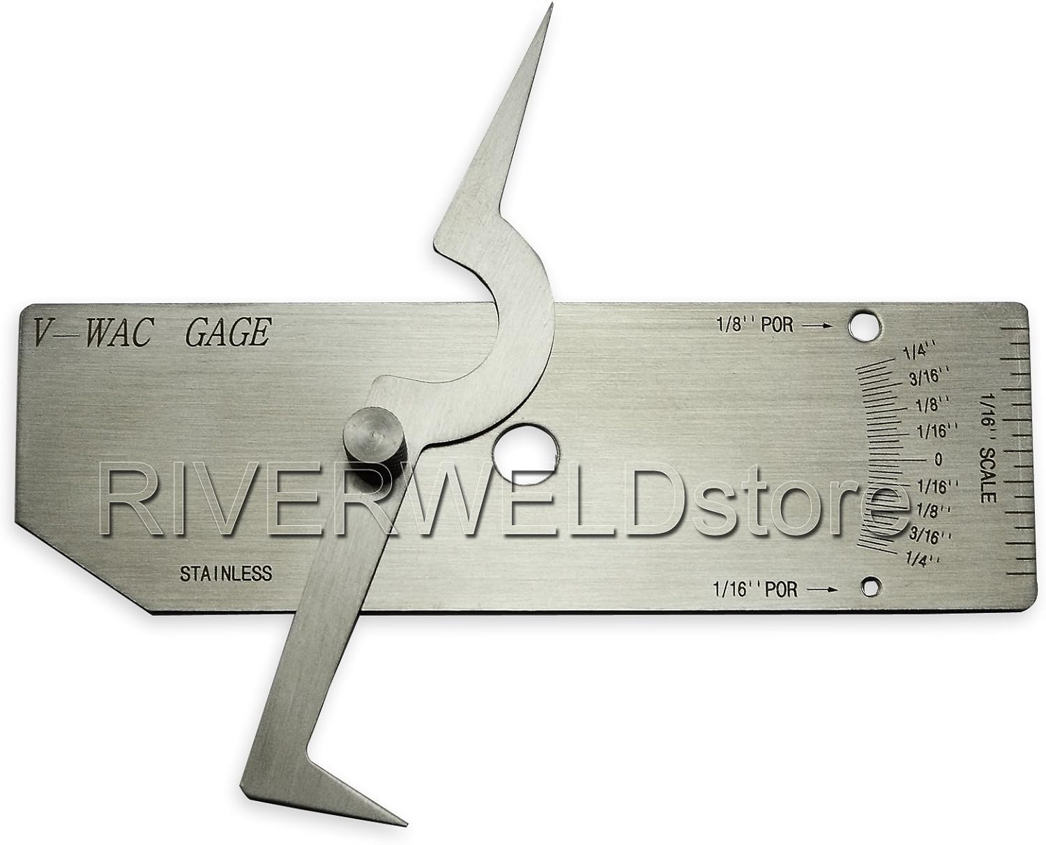 RIVERWELD V-WAC Medidor de soldadura de inspección de rosca de soldadura simple Compruebe 1/4 pulgadas cortes en la base hoyos altura de la corona porosidad hoyos