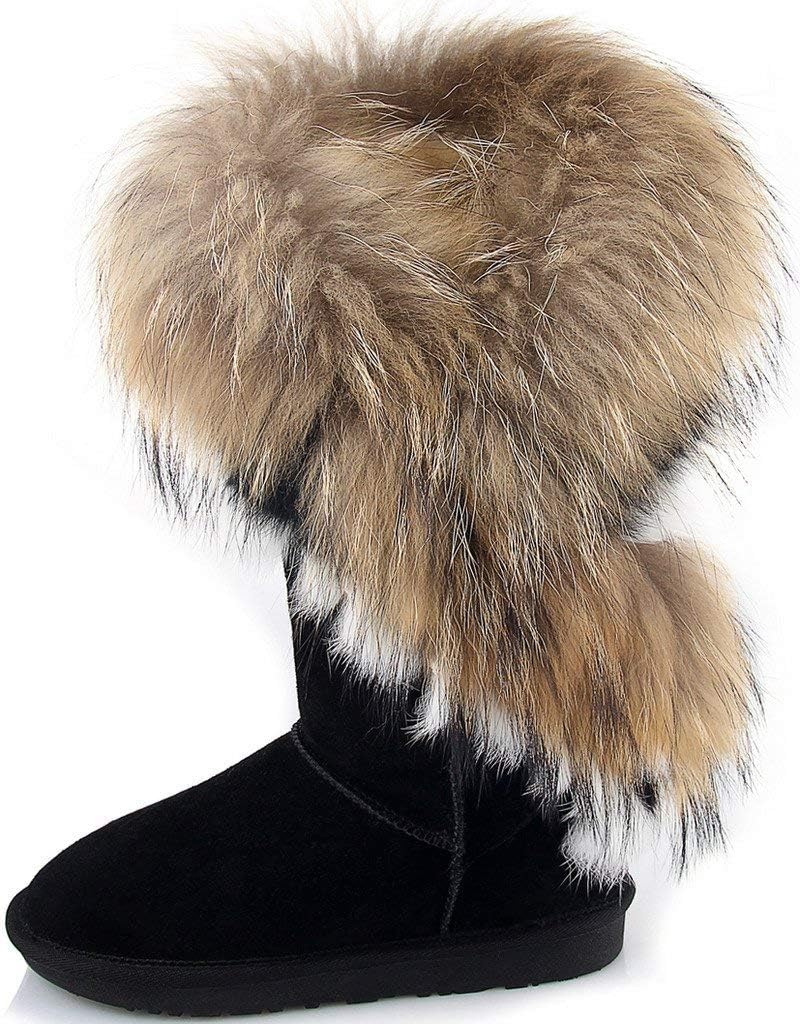 APHNUS Womens Mid Calf Boots Cow Leather Fur Snow Boots