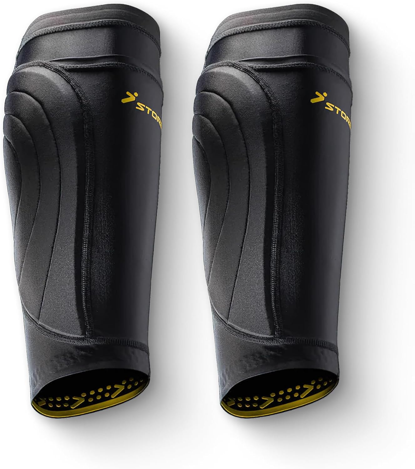 Stay protected on the field with Storelli's BodyShield leg sleeves - the ultimate solution for shielding your lower legs from impact during soccer and hockey games. These unisex leg guards feature flexible, heavy-duty 3mm XRD extreme impact protection padding for extra protection on your legs. Ideal for athletes and sports enthusiasts seeking reliable leg protection to prevent injuries. Our leg sleeves fit male and female players and offer sizes to accommodate kids and tweens. They are UV-resistant to protect your skin from harmful rays and impact-resistant with the ability to absorb up to 90% of impact. The sweat-wicking properties of these leg guards make them perfect for players who work up a sweat during intense gameplay. Lightweight materials ensure moisture is wicked away from your body, leaving you feeling comfortable and dry. Don't let lower leg injuries keep you on the bench–invest in Storelli's sports accessories and play confidently!