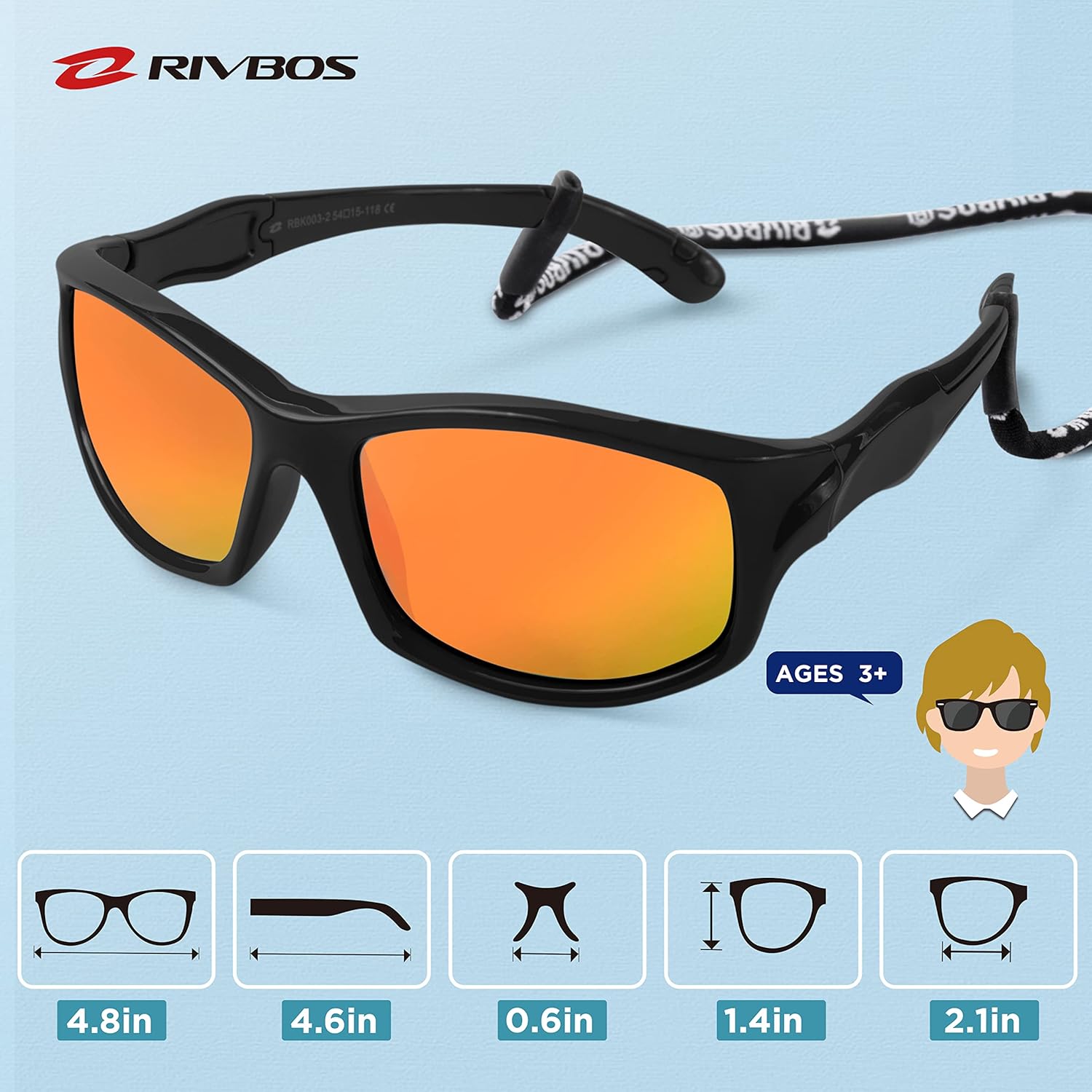 RIVBOS Kids Sunglasses with Strap Polarized UV Protection Flexible Rubber Shades for Boys Girls RBK003
