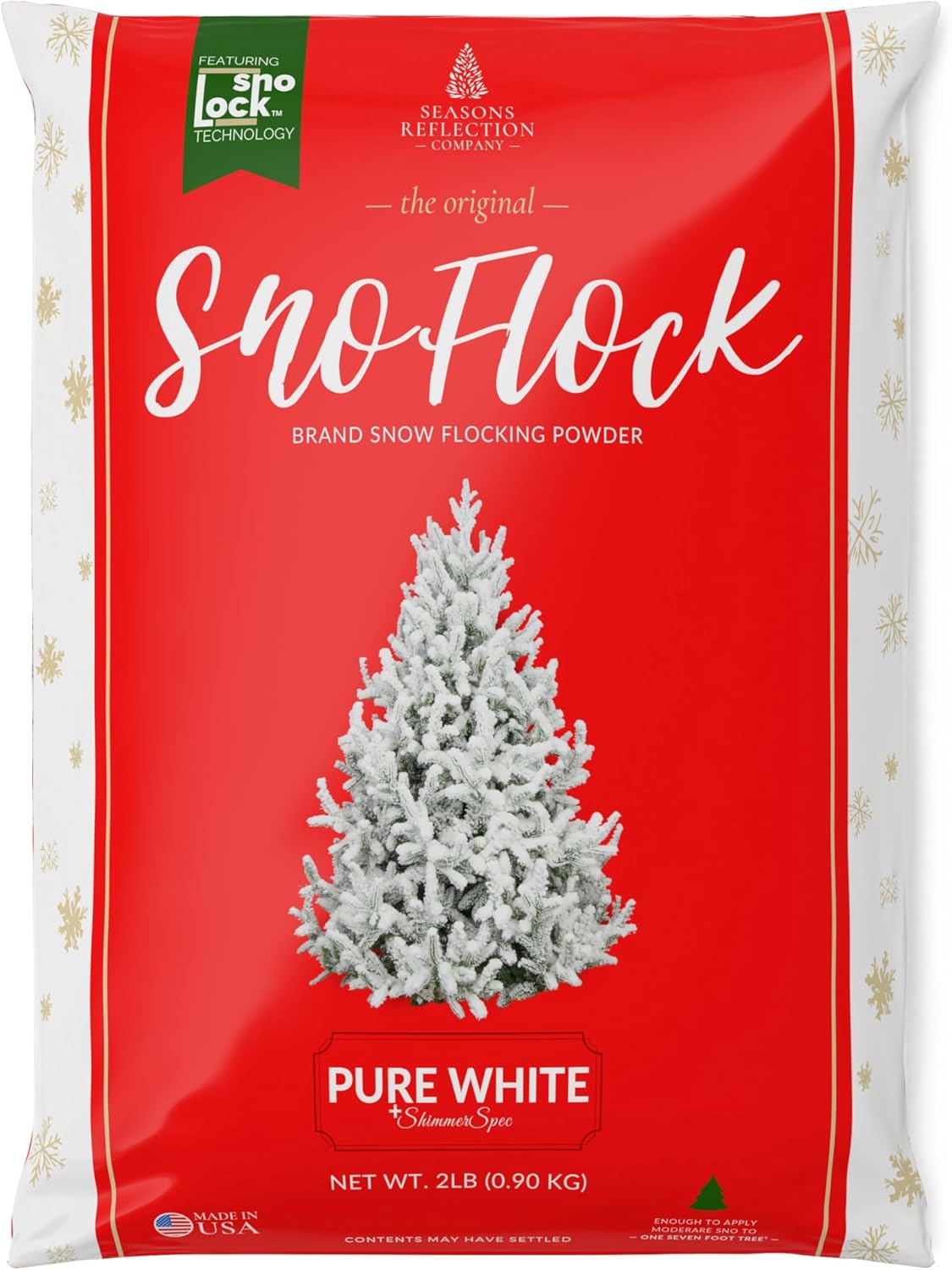 The Original Premium Self-Adhesive Snow Flock Powder with ShimmerSpec for Christmas Trees & Decor | Made in USA | 2 lbs