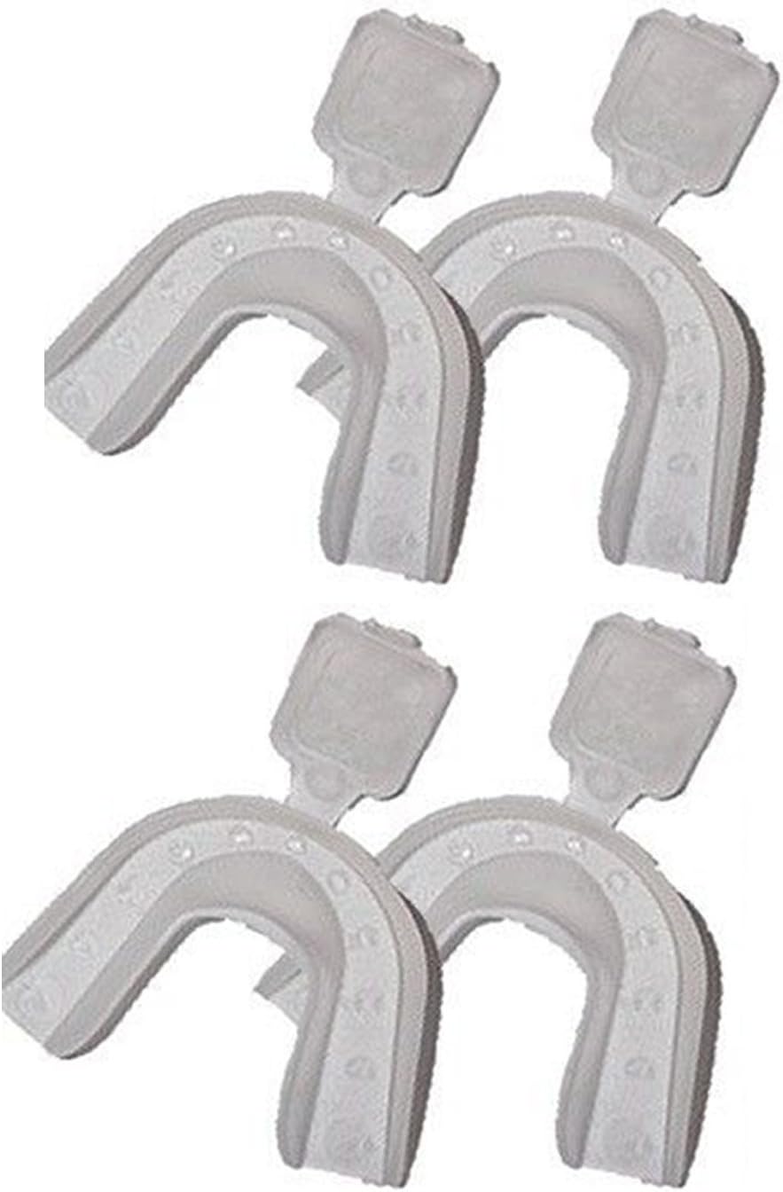 2 pairs of thermoforming trays Step 1: Place the tray over the upper teeth without placing the tray in boiling water. Practice with your tongue on the roof of your mouth and touching the inside of the tray. Suck the air from the tray. This contours the guard to the inside surface of the teeth. When finished repeat with the lower tray. Step 2: Bring water to a boil. The bowl should be at least 4" deep to ensure the tray's full immersion. Remove the container from the heat and place one tray in the hot but not boiling water. Leave the tray in water for 5 seconds. Make sure the edges do not fold onto each other. Step 3: Lift the tray vertically from the water using the tab. Carefully and quickly place the tray around the teeth and then immediately perform the procedure outlined in step 1. Step 4: Once you are satisfied with the fit, trim the front tab away from the tray with scissors. Make sure it is flush with the front surface of the tray.