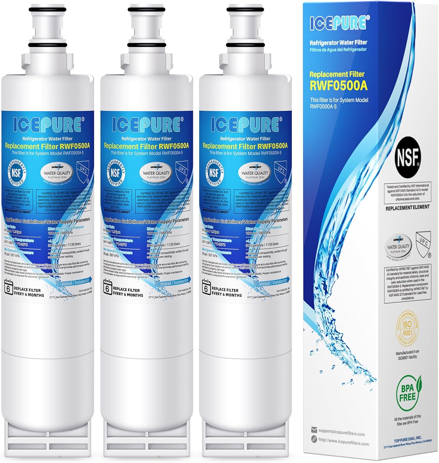 ICEPURE 4396508 Repuesto para Whirlpool 4396510, EDR5RXD1, PNL240V, 4396508p, 4396547, 4392857, LC400V, WF-NLC240V, 46-9010, Filtro de Agua de Refrigerador Everydrop Filter 5, 3PAQUETE