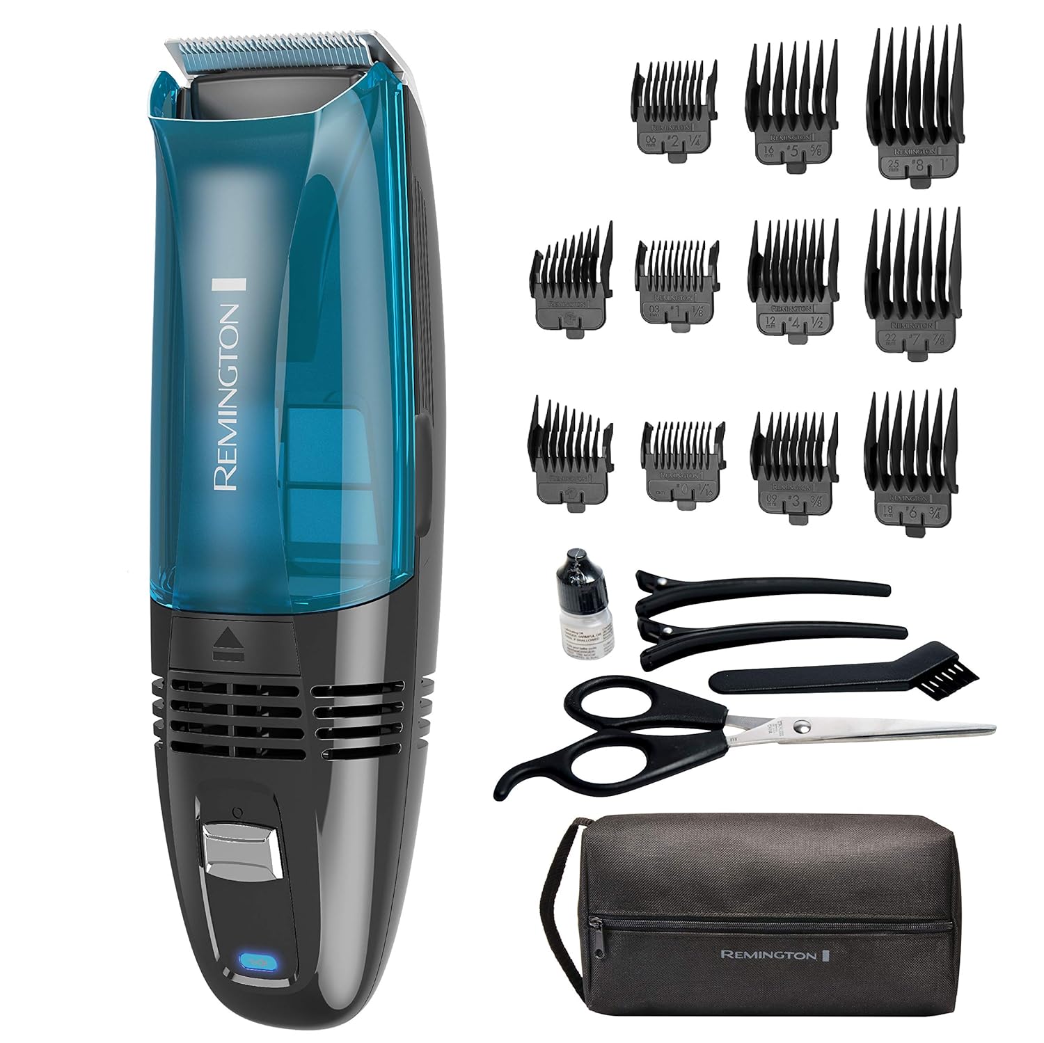 Style Name:Cordless Haircuts at home without the messy cleanup; The Remington Lithium Power Series Vacuum Haircut Kit combines our best technology into one clipper. The lithium ion battery provides consistent power to titanium-coated blades and to the powerful vacuum that keeps trimmed hair off your floor. The kit includes length-adjusting combs, barber scissors, and tapering combs to put the finishing touches on personalized haircuts. Plus, a cleaning brush and blade oil keep the clipper working at top performance through every haircut. Keep the cord away from heated surfaces.