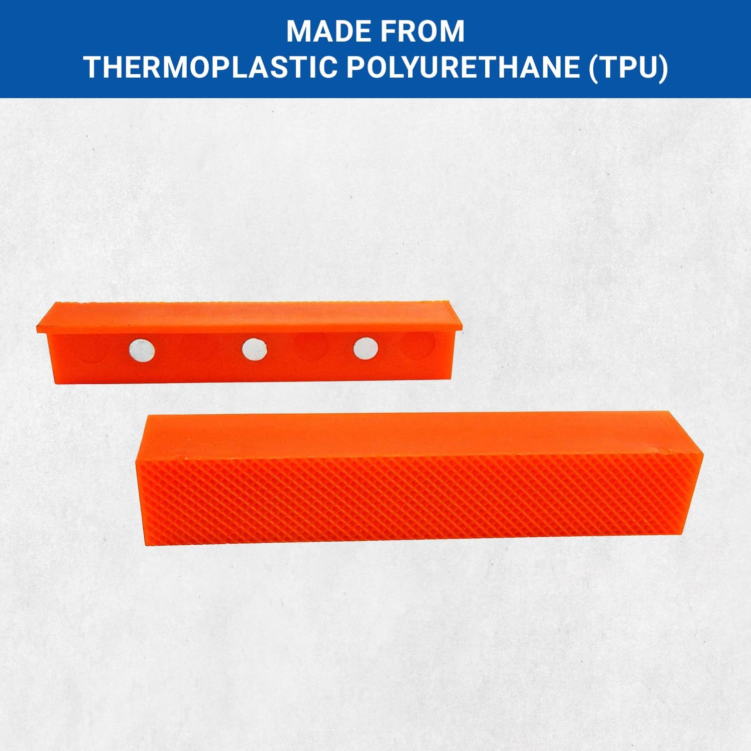 VISE JAW COVER: Yost Vises MU360 Universal 6 Inch Jaw Cover is made from thermoplastic polyurethane (TPU) and can be used on any metal vise for holding wood, metal, plastic, tubing, threaded items safely protecting any product flat or round.