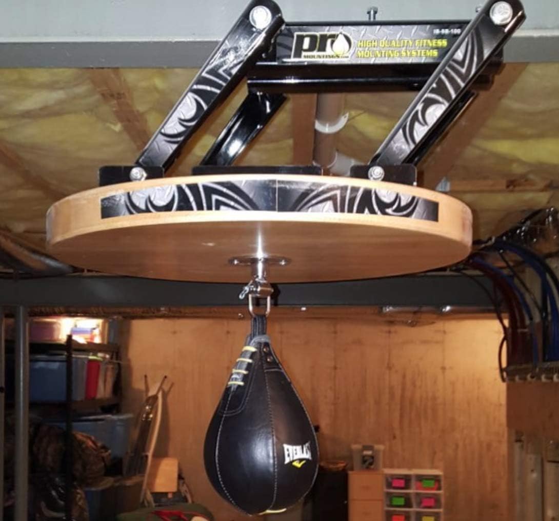 Our I-beam speed bag mount is the first of its kind. The 24 inch platform is made from 2 inch thich solid amish maple. It is the strongest and best speed bag mount on the market, finished with black powder coating for durability. The height is adjustable for 10 inches of travel. What is included: - Speed Bag - Swivel - Mounting Hardware
