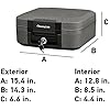 MEDIDAS: El exterior es de 15.4 pulgadas de ancho x 14.3 pulgadas de profundidad x 6.6 pulgadas de alto y el interior es de 12.8 pulgadas de ancho x 8.5 pulgadas de profundidad x 4.4 pulgadas de alto, la caja segura es de 0.28 pies cúbicos y pesa 20 libras