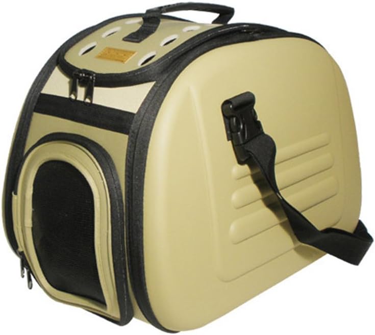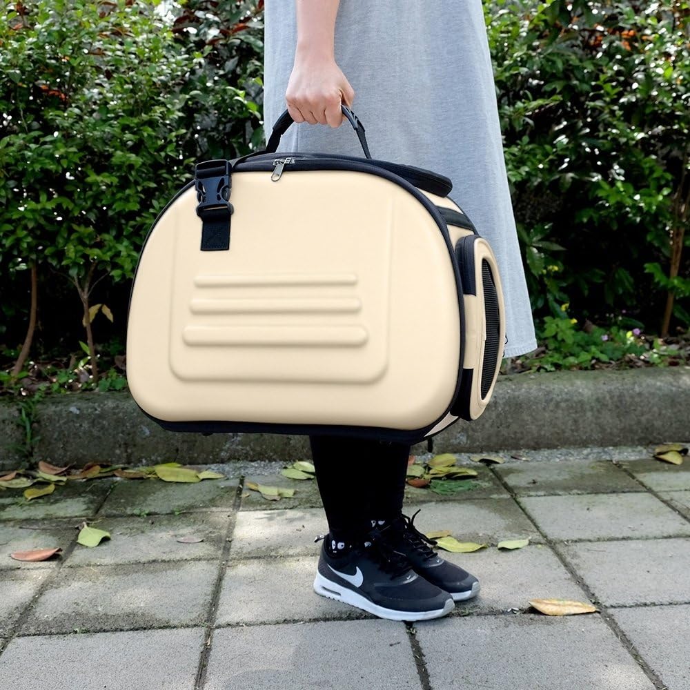 El transportín clásico para mascotas viene en colores beige y café, con piel sintética y material EVA ecológico. El material EVA pasó pruebas de resistencia al agrietamiento por tensión y a prueba de agua. Tiene el tamaño perfecto para el transporte y, cuando se pliega, ahorra espacio de almacenamiento. Ni siquiera menciones el gran diseño de la función de sujeción del pañal.