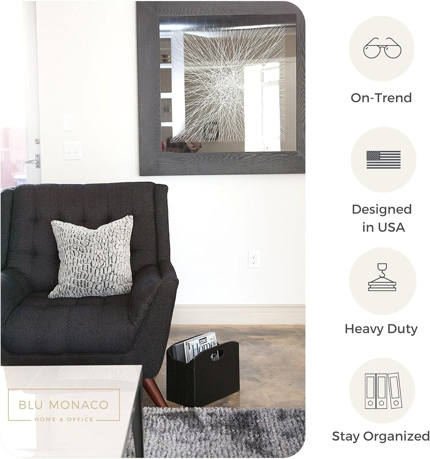 BLU MONACO Black Magazine Holder - Woven Leather Magazine Basket with Handles - Stylish Rack for Floor or Table - Perfect for Coffee Table, Side Table, Living Room, Reception Desk, or Bathroom